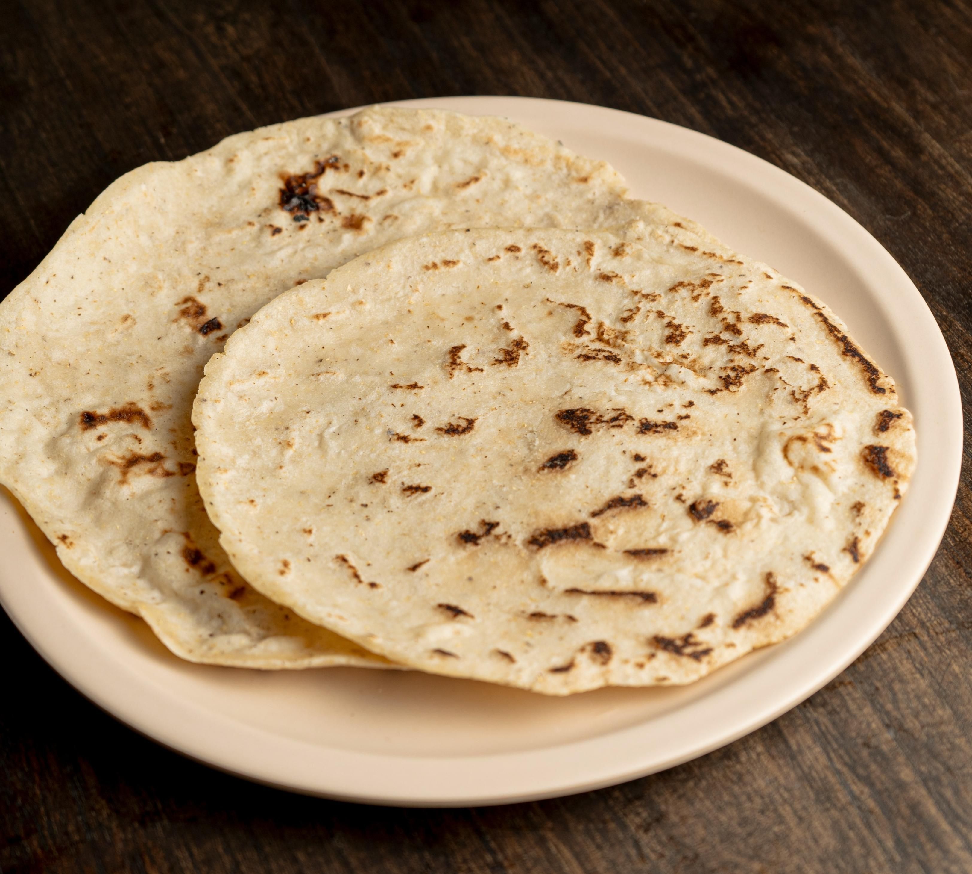 Artisanal corn tortilla, handmade. Fresh from the griddle.