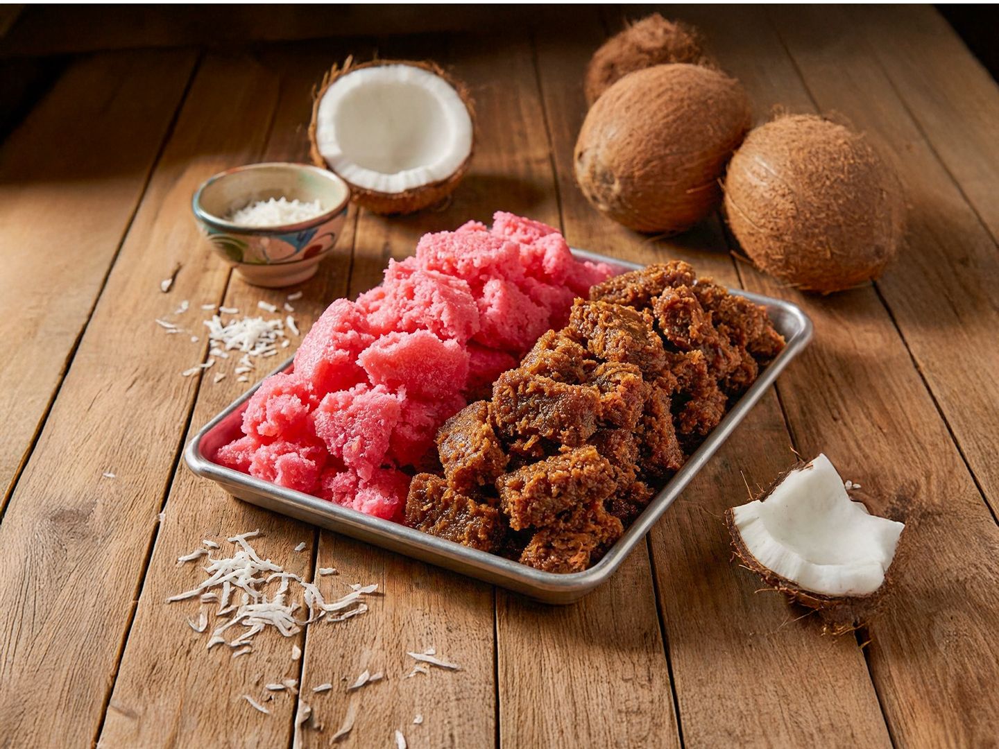 Three coconut buns bathed in milk. A creamy and tropical combination.